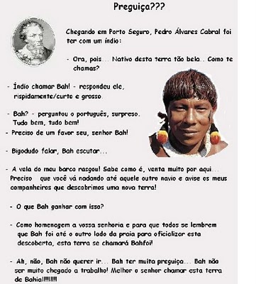Estamos repostando esta charge com uma crônica sobra a origem do nome do meu estado a Bahia,